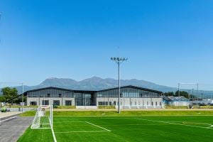 | Brief description of project | This is the home ground of the J2 League club Thespa Gunma, and was donated to Maebashi City by Cainz as part of a hometown tax donation. The two-story steel-framed building has a complex roof shape that mimics the Akagi mountain range behind it, and it functions as both a clubhouse and a facility for the local community, with Tanita Shokudo as one of the tenants. The combination of triangular roofs adds variety to the space. |