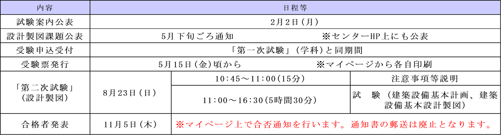 ・今年の建築設備士試験「設計製図試験」の試験スケジュールは以下となります。