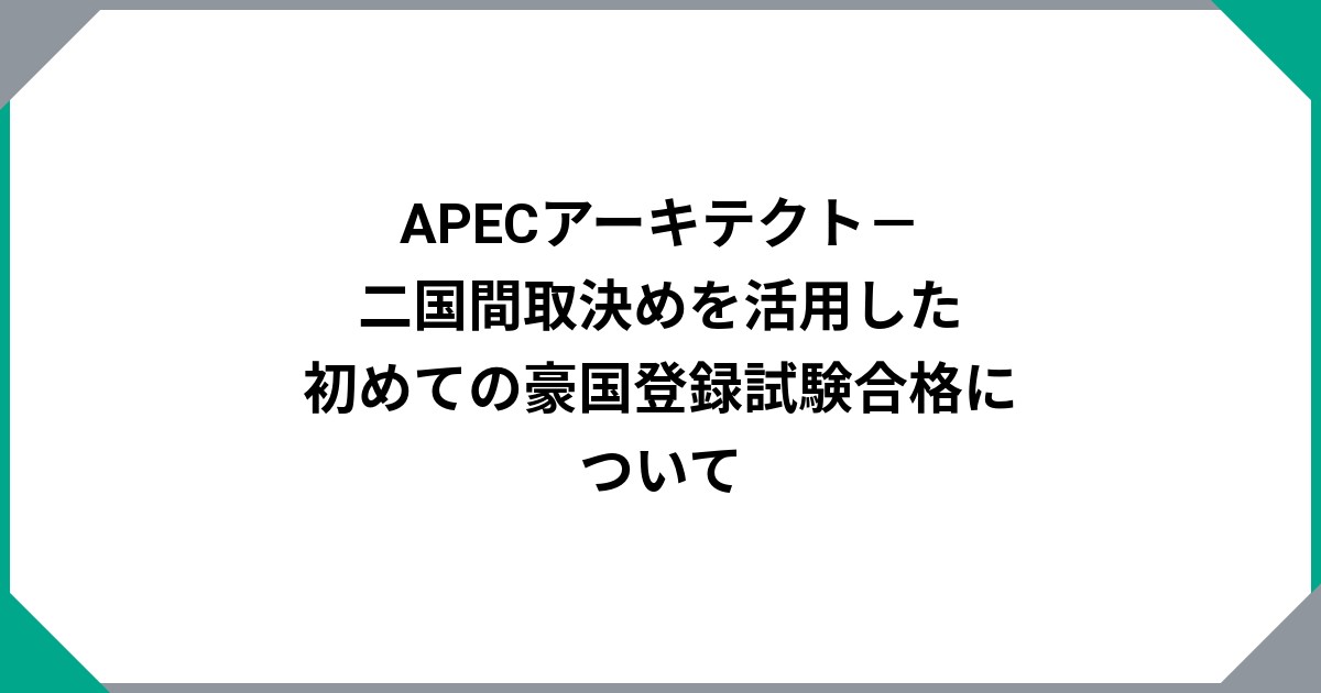 APECアーキテクト-二国間取決めを活用した初めての豪国登録試験合格について