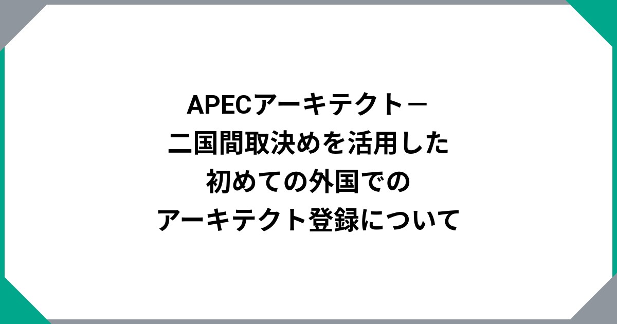 APECアーキテクト-二国間取決めを活用した初めての外国でのアーキテクト登録について