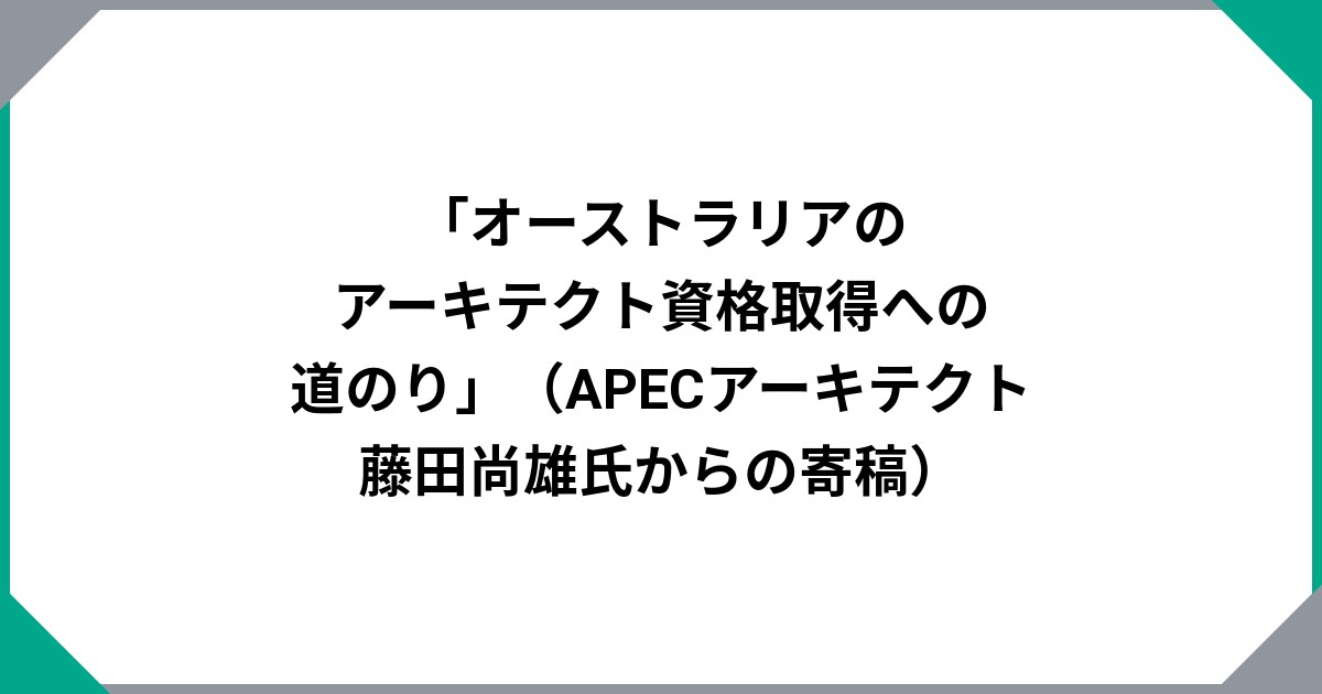 「オーストラリアのアーキテクト資格取得への道のり」(APECアーキテクト 藤田尚雄氏からの寄稿)