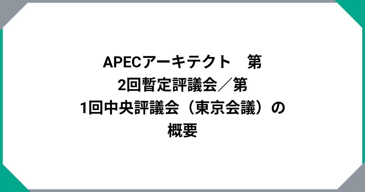 APECアーキテクト 第2回暫定評議会/第1回中央評議会(東京会議)の概要