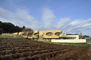 木々と畑が広がる丘陵を掘り込んで、ひっそりと沈むように横たわる建築である。周囲に広がる森と畑の景観に馴染むように地盤を谷状に削り込んで沈め、内部の各所に光庭を設けて屋内の採光が豊かになるよう計画した。 |