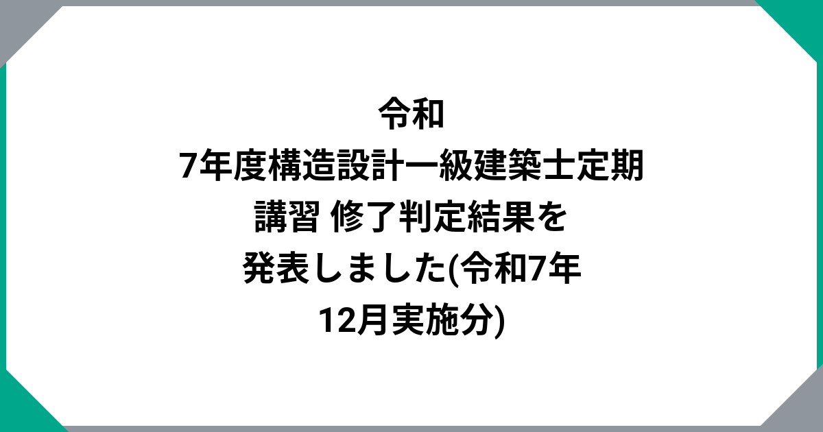 令和7年度構造設計一級建築士定期講習 修了判定結果を発表しました(令和7年12月実施分)