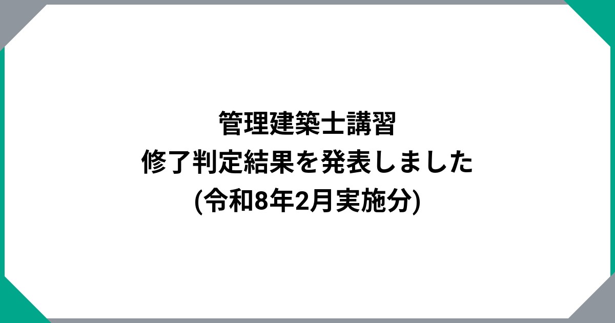 管理建築士講習 修了判定結果を発表しました(令和8年2月実施分)