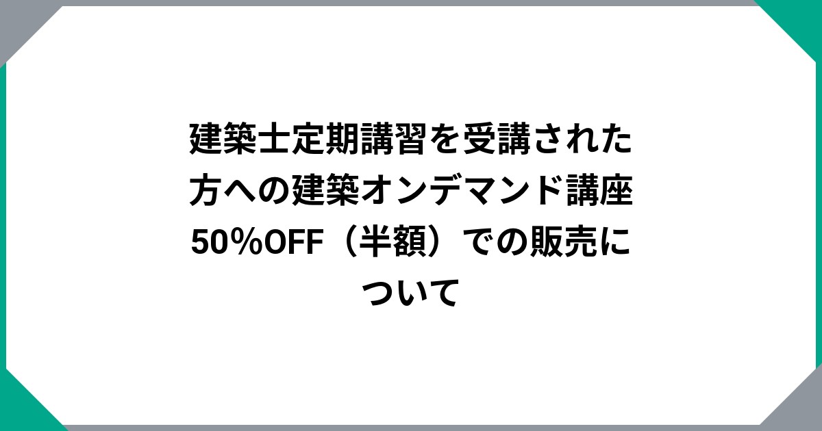 建築士定期講習を受講された方への建築オンデマンド講座50%OFF(半額)での販売について
